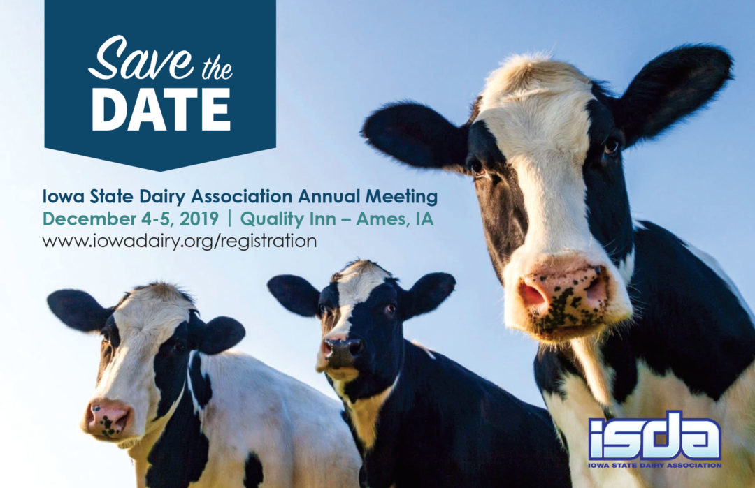 Registration is now open for the Iowa State Dairy Association Annual Meeting. Join us at the Quality Inn on December 4-5, 2019. Registration is FREE for producer members and their employees.