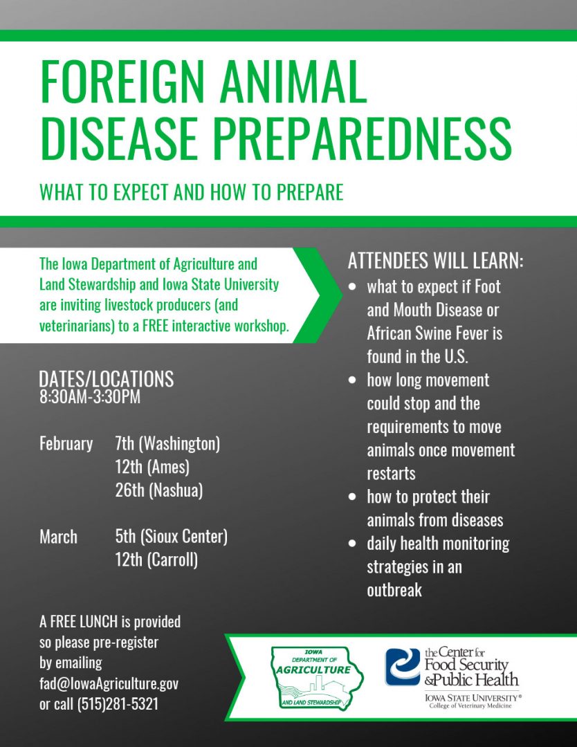 WHAT: FREE Interactive Workshop about Foreign Animal Disease Preparedness: What to expect and How to prepare