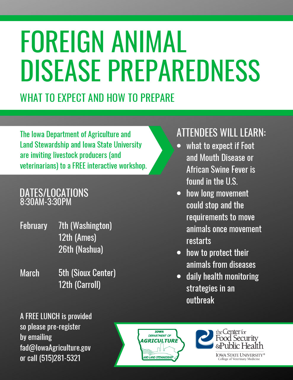 HOSTED BY: Iowa Department of Agriculture and Land Stewardship and the Center for Food Security and Public Health, Iowa State University